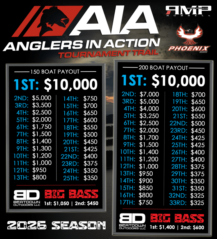 Family owned in the Heartland of America, Anglers in Action Tournament Trail offers professionally ran events, the best team trail payouts in the Midwest, live leaderboard, live weigh-in streams, more incentives, and a year end Tournament of Champions where first place wins a brand new Phoenix 819 ZXL boat package.