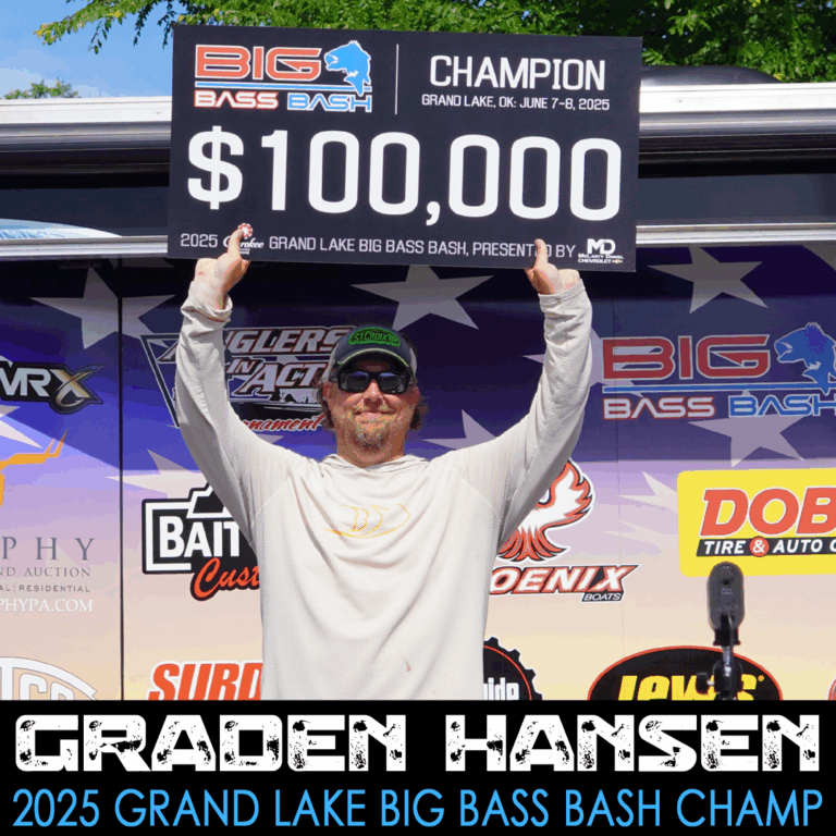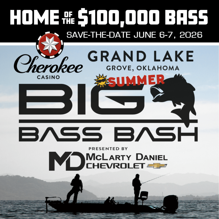 The first angler to hit an exact 6.48 lb. weight bass at the 2026 Grand Lake Big Bass Bash will win $65,000 towards a new truck at McLarty Daniel Chevrolet in Springdale, AR. If you hit the exact weight and have a vehicle that was purchased from this dealership, you’ll take home an extra $25,000 (vehicle must have been purchased after June 5, 2023)