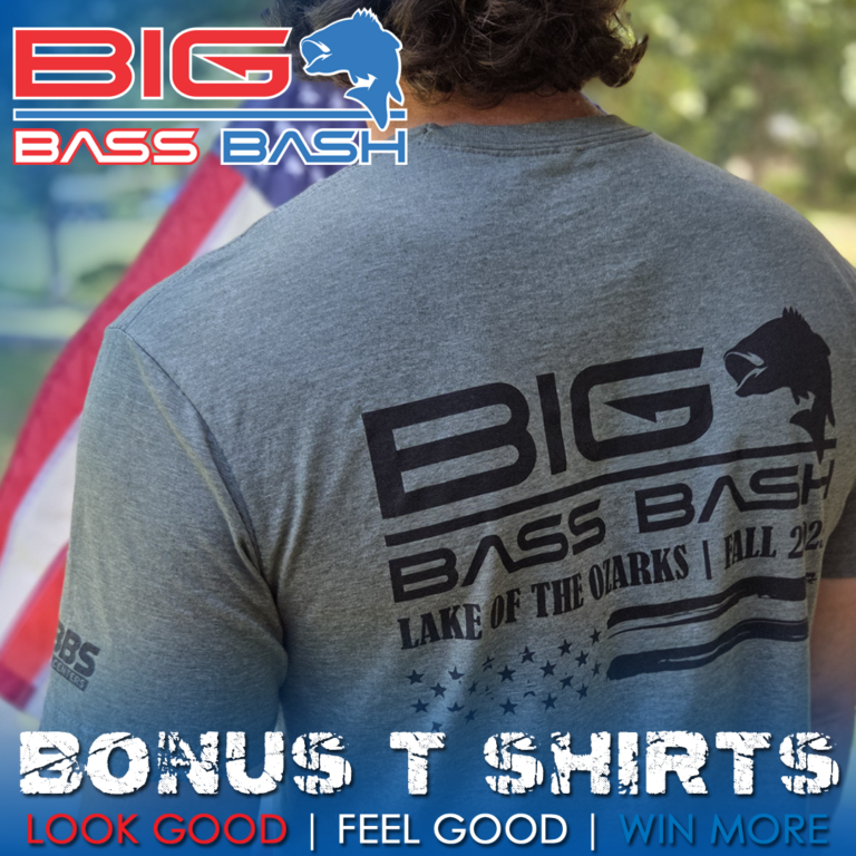 (If you pre-register or are registering at the lake, make sure you stop by the Grand Glaize State Park (PB2) on Friday, October 2nd, to purchase you Bonus T-Shirts and other BBB apparel, grab a goodie bag (quantities limited), check out all of the tackle/sponsor vendors, and more)
