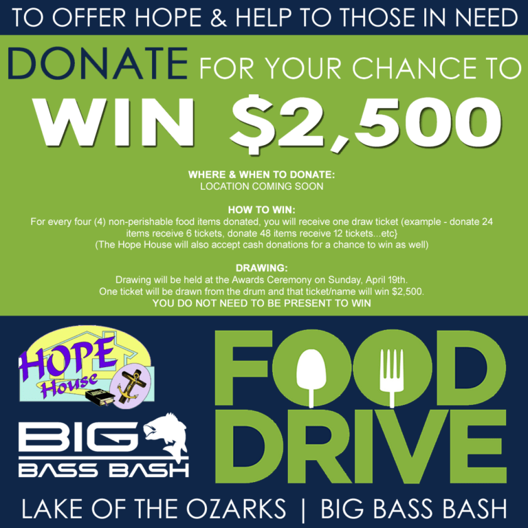 The Big Bass Bash awards ceremony will take place at the Grand Glaize State Park in Osage Beach, MO starting around 4:15pm on Sunday, October 4th. The Concord Village Lions Club will be on hand with free barbecue and beverages for all of the anglers (donations welcome), as well as other tackle and sponsor vendors. Anglers can pick up their time slot checks, watch the trophy presentations and the $200,000 champion be crowned, as well as the drawings for the Phoenix 818 Pro draw boat and Early Bird prizes.