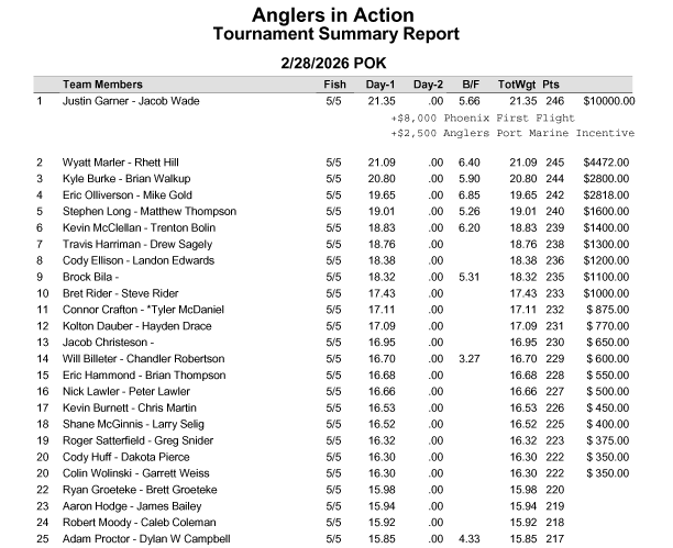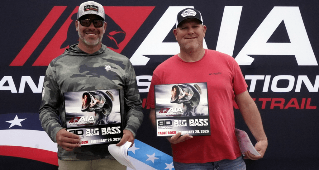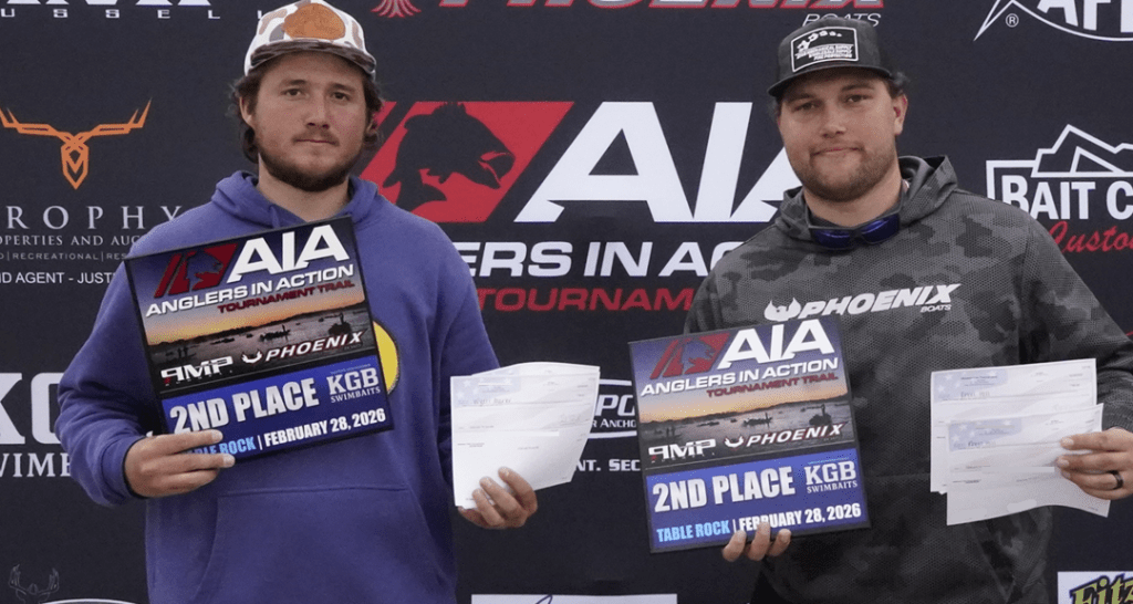 Congratulations to Jacob Wade and Justin Garner on their win at the 2026 AiA Season Kickoff at Table Rock Lake. Justin and Jacob smashed a 21.35 lb. sack of Table Rock bass to capture the win and a $20,500 Payday, which included $8,000 in Phoenix First Flight cash & $2,500 in Anglers Port Marine incentive money. If you’re considering a new Phoenix Boat, it pays to buy from Anglers Port Marine!